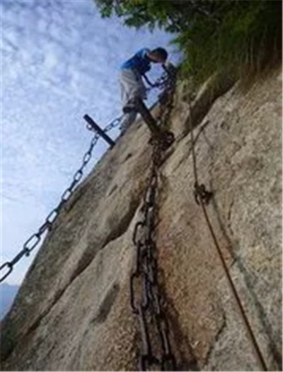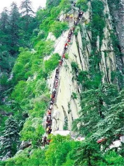 具有700多年歷史的長空棧道,在華山南峰東側(cè)山腰的萬仞絕壁上鑿出來的幾個踏腳之處,鑲嵌石釘搭木椽搭建了一個百余米懸空的棧道,讓人望而卻步,如果你有恐高癥,僅僅看一眼都會讓你驚恐萬分。2013年,著名旅游網(wǎng)站“Smarter Travel”盤點(diǎn)全球最恐怖懸崖步道,將華山長空棧道列為全球十大最恐怖的懸崖步道之一。