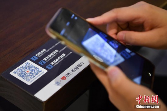 9月5日,顧客通過掃描店家二維碼實現(xiàn)點餐、取餐、結(jié)賬。當日,云南首家智慧餐廳在昆明開業(yè),消費者到店前,便可以使用口碑App或支付寶提前點好美食,預(yù)約時間然后自取,也可以到店后直接用手機點單,等收到取餐碼后,從取餐柜中拿出菜品,自助完成就餐全流程。中新社記者 劉冉陽 攝