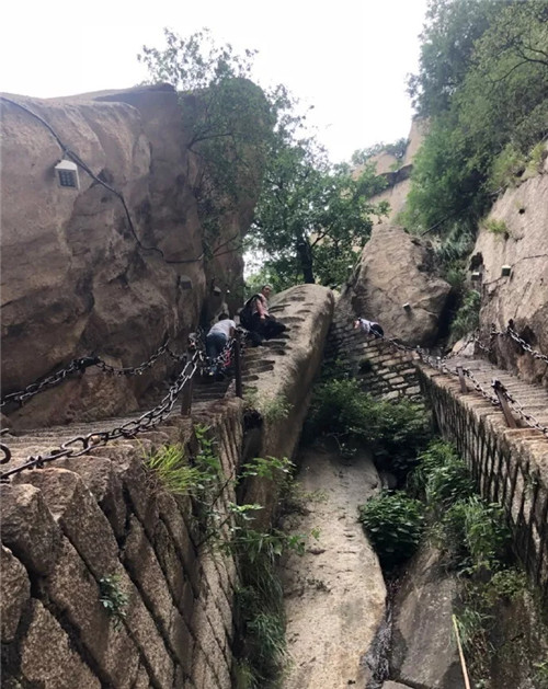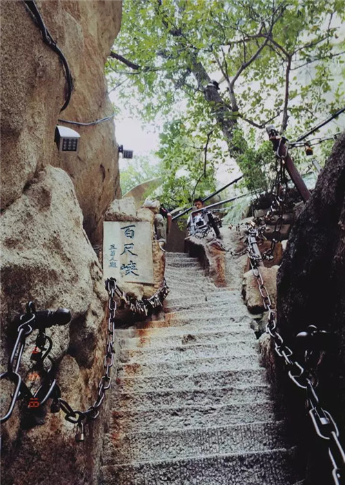 最虐的自古華山一條路,12.5公里的山路,9567級臺階。途經(jīng)玉泉院、千尺幢、百尺峽、老君犁溝、蒼龍嶺等經(jīng)典景點。