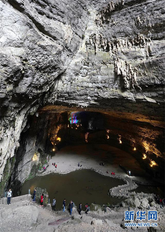 10月14日,游客在興文石海世界地質公園的地下溶洞參觀。