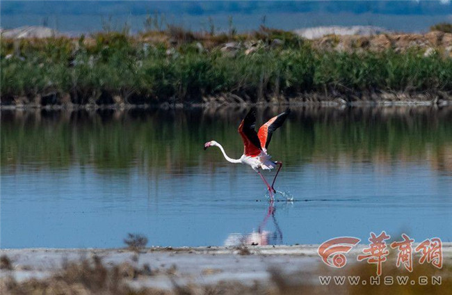 近日,榆林市攝影愛好者楊繼焱在定邊縣茍池觀察鳥情時(shí)發(fā)現(xiàn)1只鳥,經(jīng)確認(rèn)為火烈鳥。