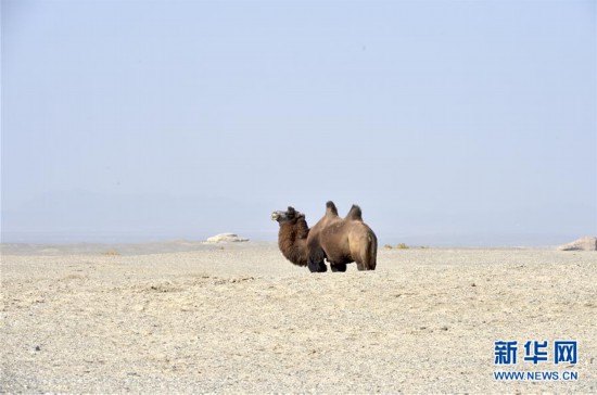 這是10月16日在敦煌西湖國家級(jí)自然保護(hù)區(qū)拍攝的野駱駝。 新華社記者 李笑 攝