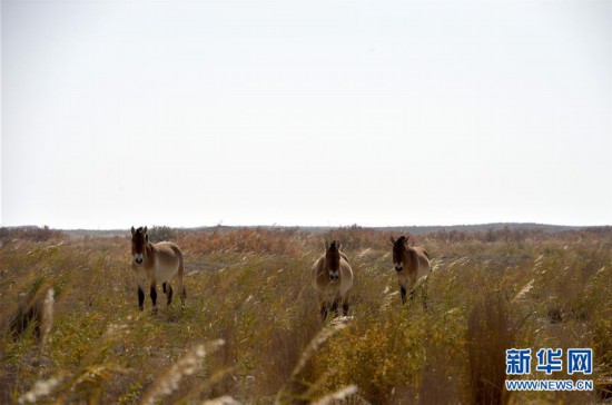 這是10月16日在敦煌西湖國家級(jí)自然保護(hù)區(qū)拍攝的普氏野馬。 新華社記者 胡偉杰 攝