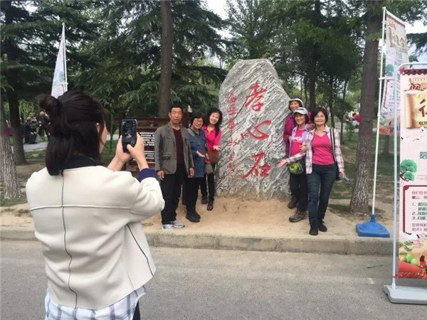 在節(jié)日的氛圍里,游客熱情高漲,爭(zhēng)先恐后地與“孝心石”合影留念,以此表達(dá)自己對(duì)父母的親切祝福。