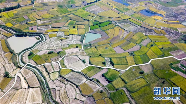 安徽鳳陽(yáng)小崗村的田野景象(9月27日無(wú)人機(jī)拍攝)。 新華社記者 張端 攝