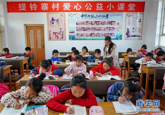 近日,河北省遷安市閆家店鄉(xiāng)提鈴寨村黨支部副書記李飛燕針對該村留守兒童放學(xué)后無人看護或者沒有人輔導(dǎo)作業(yè)的情況,在村委會辦起了一個“愛心公益小課堂”,讓孩子們來這里學(xué)習(xí),解決了外出務(wù)工家長們的后顧之憂。新華社記者 楊世堯 攝