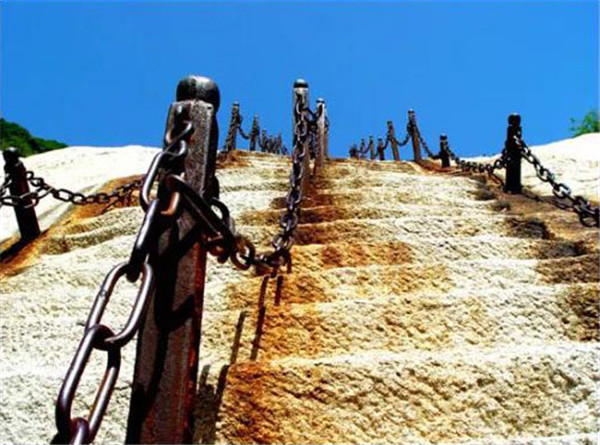 史學(xué)家考證:記載華山最早的書籍是《尚書·禹貢篇》,《史記·封禪書》載有黃帝、堯、舜巡游華山事。人們最早登臨華山主峰的記載見于《韓非子·外儲說左上》。酈道元的《水經(jīng)注》顯示,今日登山路已現(xiàn)雛形,至唐代已開辟出從華山峪經(jīng)青柯坪、云臺峰登頂?shù)穆肪€,即“自古華山一條路”,距今已有一千多年了。