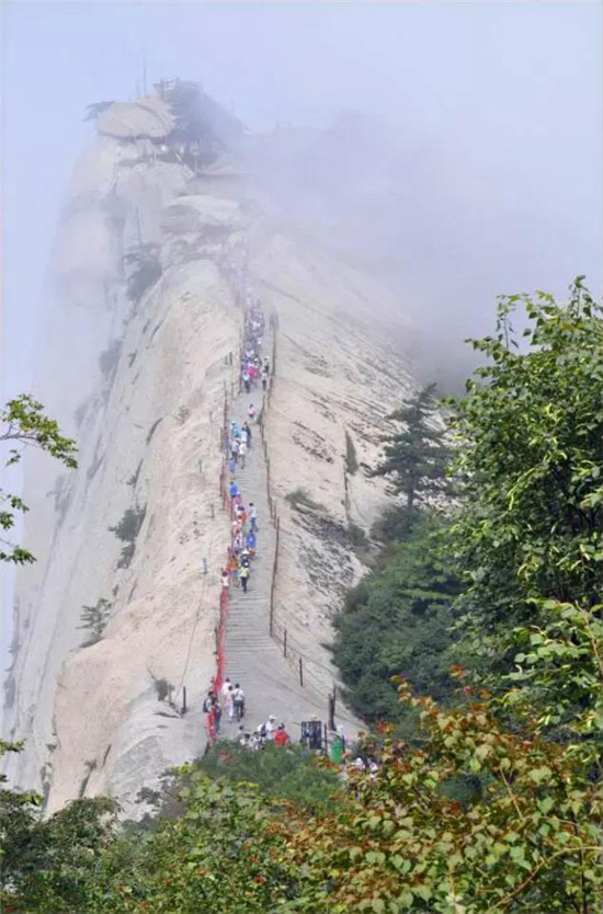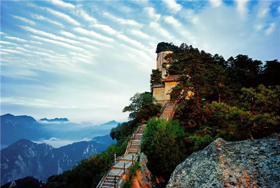 華山的登山道路自古以來以奇險(xiǎn)著稱,而且只有一條道路,別處不能通達(dá),可謂天下奇觀。“自古華山一條路”的奇特景觀,造就和形成了華山特出的道路景觀文化。這條道路越石潤(rùn)、穿石峽臨峭壁、就危崖,奇絕壯美,峻險(xiǎn)峭麗,景色各異,各顯其奇,形成了異景紛呈的脊嶺道路、巖隙道路、絕壁道路、凌空棧道等多種道路景觀,加之人們給這些道路上演繹了許多美麗的傳說故事,使華山的道路充滿了濃郁的文化氛圍。