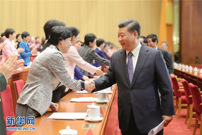 10月30日,中國(guó)婦女第十二次全國(guó)代表大會(huì)在北京人民大會(huì)堂開幕。這是中共中央總書記、國(guó)家主席、中央軍委主席習(xí)近平等同與會(huì)代表親切握手。 新華社記者 鞠鵬 攝