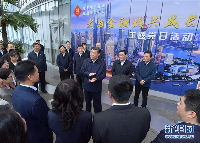 這是習近平在位于上海市浦東新區(qū)陸家嘴的上海中心大廈,視察陸家嘴金融城黨建服務中心,了解城市樓宇黨建工作情況。 新華社記者 謝環(huán)馳 攝