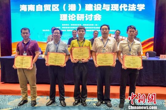 圖為海南省法學(xué)會(huì)向海南自貿(mào)區(qū)(港)法治建設(shè)優(yōu)秀論文撰寫者頒獎(jiǎng)。 洪堅(jiān)鵬 攝