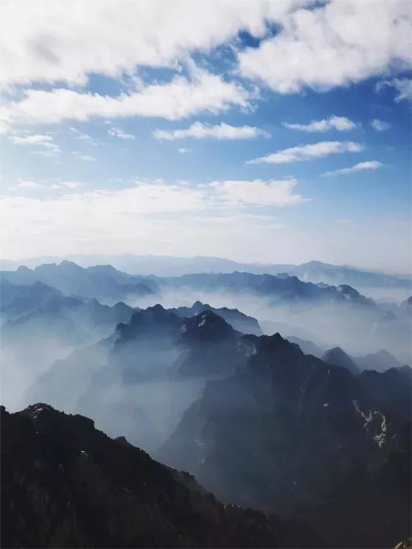 遠(yuǎn)處山巔的那片藍(lán),像是被初冬下過(guò)雪的清冷氣流滲入又渲染過(guò)得一樣,清明、澄澈、又讓你忍不住,陷入在這抹飄渺、悠遠(yuǎn)的華山藍(lán)里沉思、遐想……