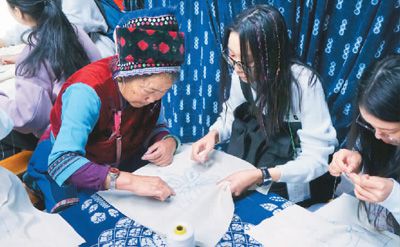 何晞瑤對萂村之行記憶更深刻。盡管生長在國際化都市,何晞瑤卻鐘情于傳統(tǒng)和懷舊。她和白族阿媽、阿姐學習刺繡,一針一針學得特別認真,學習結(jié)束后,她還把自己準備的小禮物贈送給了當?shù)氐陌鬃謇蠋煛?/p>