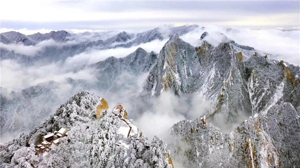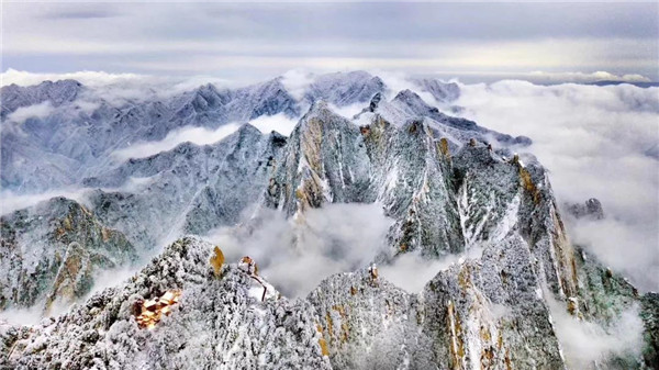 17日凌晨的一場大雪將西岳華山變成白雪皚皚的世界,白雪與蒼翠的華山奇松、靈動的云海交相輝映,如夢如幻;滿山遍野玉樹瓊花,樹枝上通體的霧凇晶瑩剔透,繪就冬日畫境,美不勝收,游人如置身人間仙境。