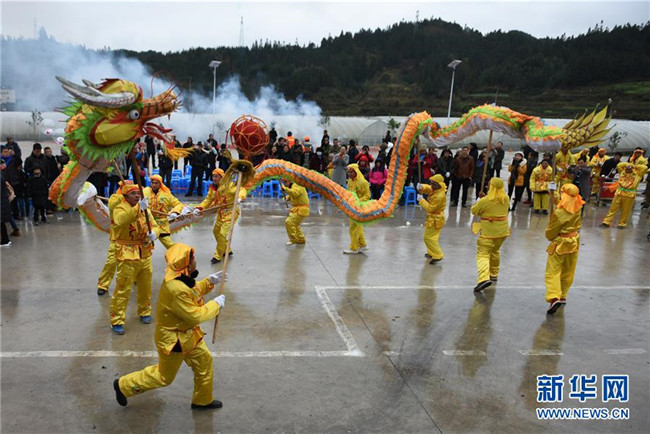 12月9日,貴州省黎平縣中潮鎮(zhèn)佳所侗寨的村民在侗年活動(dòng)中舞龍。 新華社發(fā)(楊文斌 攝)