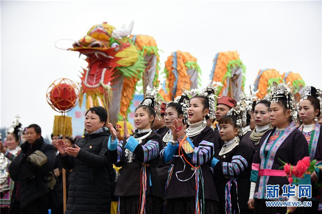 12月7日至9日,貴州省黔東南苗族侗族自治州黎平縣肇興、佳所等侗寨的侗族同胞身著節(jié)日盛裝,與賓朋歡聚一堂,通過盛裝巡游、鼓樓對歌、侗戲展演、舞龍、打年粑等特色民俗活動(dòng),歡度侗年。新華社發(fā)(楊文斌 攝)