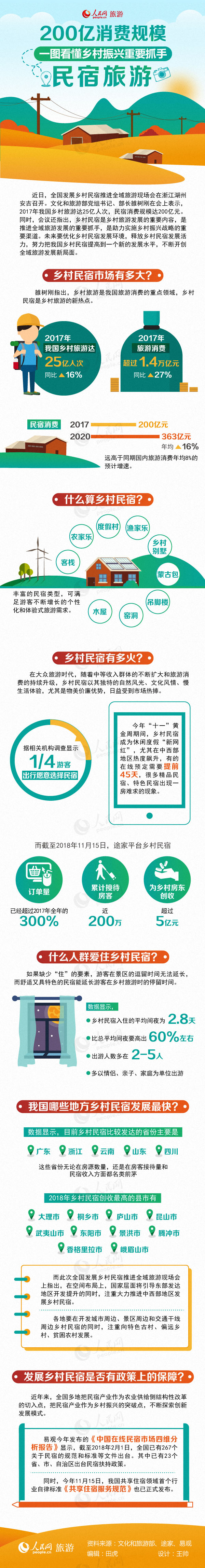 近日,全國(guó)發(fā)展鄉(xiāng)村民宿推進(jìn)全域旅游現(xiàn)場(chǎng)會(huì)在浙江湖州安吉召開(kāi)。文化和旅游部黨組書(shū)記、部長(zhǎng)雒樹(shù)剛在會(huì)上表示,2017年我國(guó)鄉(xiāng)村旅游達(dá)25億人次,民宿消費(fèi)規(guī)模達(dá)200億元。同時(shí),會(huì)議還指出,鄉(xiāng)村民宿是鄉(xiāng)村旅游發(fā)展的重要內(nèi)容,是助力實(shí)施鄉(xiāng)村振興戰(zhàn)略的重要渠道,未來(lái)要優(yōu)化鄉(xiāng)村民宿發(fā)展環(huán)境,不斷開(kāi)創(chuàng)全域旅游發(fā)展新局面。如此大的規(guī)模,鄉(xiāng)村民宿到底是什么?哪些地區(qū)鄉(xiāng)村民宿最火?什么人群愿為鄉(xiāng)村民宿買(mǎi)單?一張圖帶你讀懂鄉(xiāng)村民宿!(田虎)
