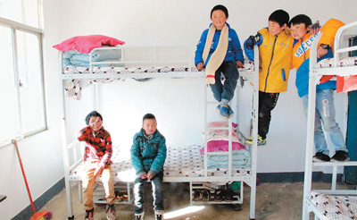 學校新修了宿舍, 路遠的學生可以住校,小滿(中)也選擇住校。 |