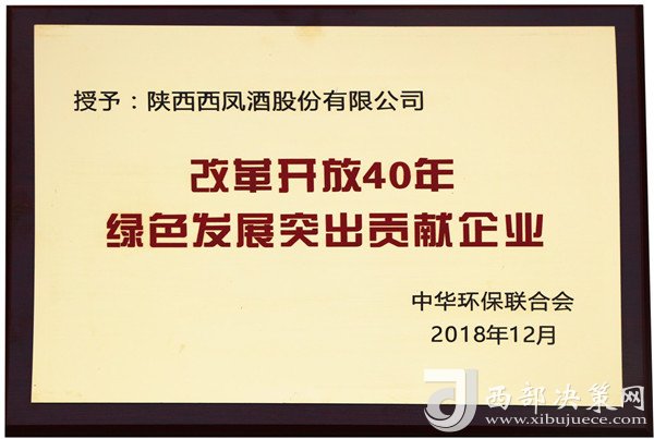 近日,在中華環(huán)保聯(lián)合會(huì)組織的“紀(jì)念改革開(kāi)放40年中國(guó)企業(yè)綠色發(fā)展成就主題活動(dòng)”中,陜西西鳳股份公司因在綠色發(fā)展、生態(tài)文明、環(huán)境保護(hù)、節(jié)能減排等方面的突出成績(jī),榮獲改革開(kāi)放40年“綠色發(fā)展突出貢獻(xiàn)企業(yè)”殊榮。標(biāo)志著該公司在實(shí)施綠色發(fā)展戰(zhàn)略、生產(chǎn)綠色產(chǎn)品、使用綠色技術(shù)等方面的卓越成果得到國(guó)家環(huán)保部門(mén)的充分肯定,達(dá)到了企業(yè)經(jīng)濟(jì)效益、社會(huì)效益、環(huán)境保護(hù)效益的有機(jī)統(tǒng)一。