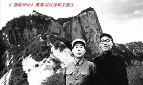 1949年6月,西北野戰(zhàn)軍解放了西安,當(dāng)華陰縣城解放時,偽保六旅旅長韓子佩,帶一個警衛(wèi)營和旅直屬隊300余人逃到了華山上,企圖依靠華山天險繼續(xù)同胡宗南聯(lián)系等待時機(jī),卷土重來。6月14日,中國人民解放軍大荔軍分區(qū)路東縱隊偵察參謀劉吉堯和六名偵察兵前往華山偵察道路。在當(dāng)?shù)叵驅(qū)蹉y生的帶領(lǐng)下,劉吉堯星夜帶領(lǐng)楊建東、路德才、孟俊甫、楊黨成、崔朝山、張自發(fā)等8勇士,到達(dá)猩猩溝盡頭。數(shù)百丈危崖聳立在面前,王銀生指著一個十丈高的黑洞說:“這是天井,我們就要從這里上去。”說著就把背著的大繩套在腰間,借著兩腿叉開的撐力,徐徐向上。10分鐘后,洞里放下來一根繩頭,7位偵察員依次被吊上天井。經(jīng)過一段險坡后,前面又是一個高約15米的陡立石壑。王銀生施展他在山里采藥、打柴的本領(lǐng),借著一條石縫登上去,把繩子拴在一個木樁上,將其他同志吊上來。又向北行約1里便是“老虎口”,這是懸在絕壁上的一個崖歙,崖歙的上面伸出一個飛巖,下面是傾斜的滑坡,坡下便是一眼望不到底的萬丈深淵。這時候只要雙腿發(fā)軟,就會滑下去,尸骨無存。戰(zhàn)士們只能借著腰肢和肩膀的上下?lián)瘟?,好像一個木楔子似的慢慢通過。在漆黑的夜里,他們又下滑輾轉(zhuǎn)500多米,才到達(dá)北峰腳下。