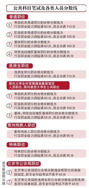 2 北京市公安局的選調(diào)生職位合格分?jǐn)?shù)線按照選調(diào)生職位標(biāo)準(zhǔn)劃定,且專業(yè)科目考試不低于45分