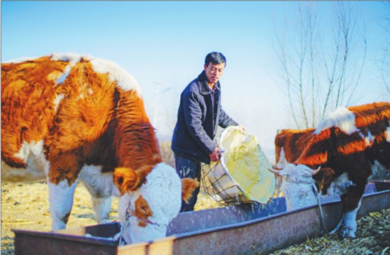 正當(dāng)路來寶一家深陷貧困泥淖,一籌莫展的時候,立志村村黨支部書記谷秀偉的一番話讓路來寶再次看到了希望。“俗話說‘母牛下母牛,三年五個頭’,都說養(yǎng)牛能掙錢,你要能吃得了那份苦,你就嘗試著養(yǎng)牛吧。沒技術(shù),我找人教你,沒資金我給你作保,幫你賒牛。”在谷秀偉的鼓勵下,路來寶這個養(yǎng)殖門外漢在自家小園搭起了簡易牛舍,賒來的兩頭母牛也成了一家人脫貧的全部希望。