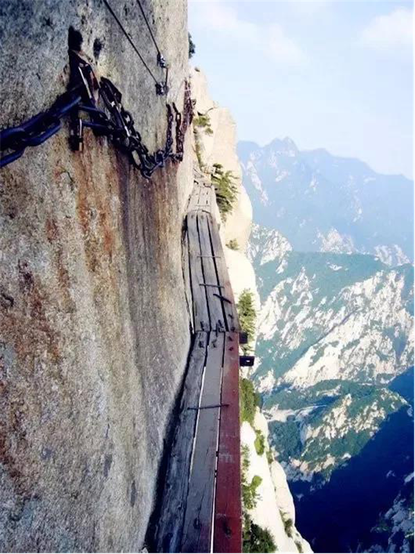 我站在華山兩塊窄窄的木板上,依靠鐵釘楔入巖石作為支撐,我的腳下,是1000米的深谷,冰雪的路面很滑。我來華山旅游純粹是因為在互聯(lián)網(wǎng)上瘋傳的一張圖片,也就是指“世界上最危險的登山路”那張?,F(xiàn)在有了安全保護措施,實際上用不著擔心危險了??謶致可闲念^,頭腦變得有些麻木。西安是中國的古城,在強盛朝代時期占有重要的歷史地位。