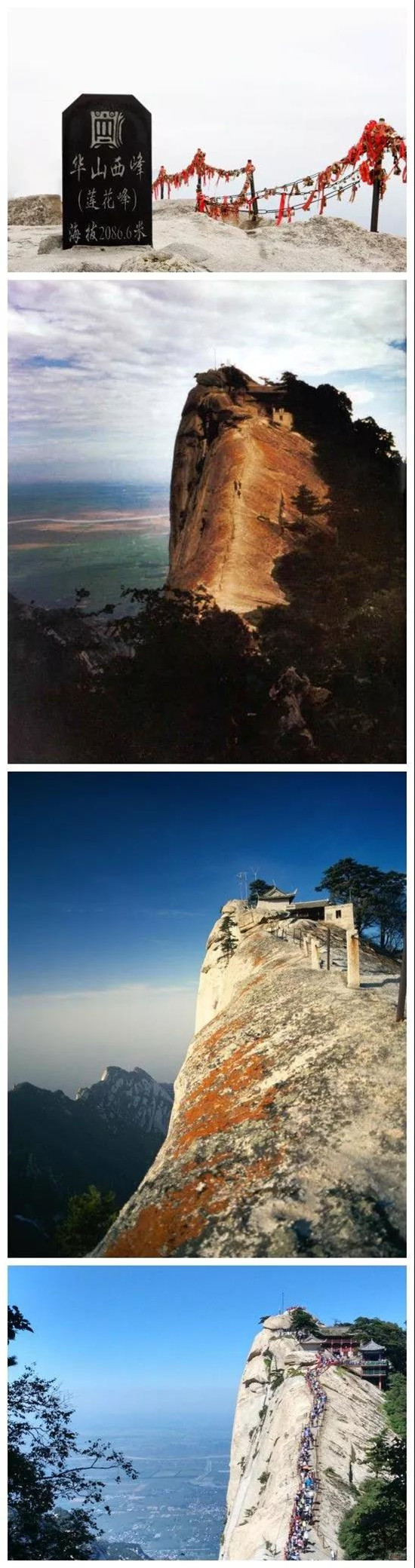 【圖2 北峰華山論劍碑、圖3 華岳仙掌、圖4南峰平安鐘、圖5 蒼龍嶺西北屏障、圖7、8長(zhǎng)空棧道】