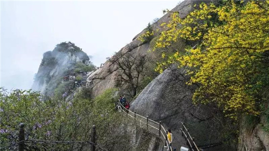 在華山北峰處,有一處巨大的摩崖石刻,上寫四個(gè)大字“華夏之根”。意思是華山是中華民族的發(fā)源地,是華夏民族的根系。