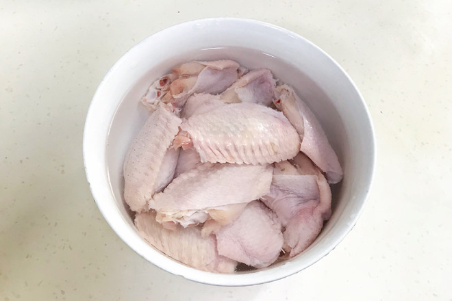 1.雞翅中浸泡20分鐘去去血水,沖洗干凈,瀝干水分。