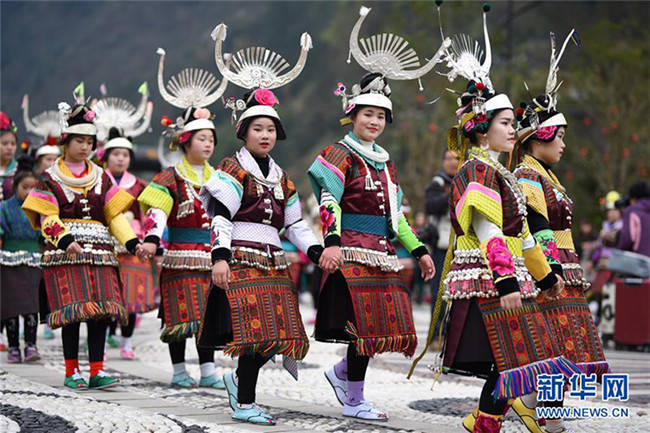 3月16日,在丹寨縣南皋鄉(xiāng)清江村,苗族姑娘在前往參加翻鼓節(jié)活動途中。 當(dāng)日,貴州省黔東南苗族侗族自治州丹寨縣南皋鄉(xiāng)清江村清江村舉行翻鼓節(jié)。翻鼓節(jié)是當(dāng)?shù)孛缱宕迕裼哟焊絹淼拿袼坠?jié)日,至今已有近600年歷史,每年農(nóng)歷二月舉行。 新華社記者 楊文斌 攝
