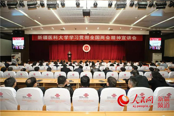 3月17日上午,新疆醫(yī)科大學(xué)會(huì)議廳內(nèi)座無(wú)虛席,4位出席十三屆全國(guó)人大二次會(huì)議的新疆全國(guó)人大代表返回烏魯木齊后,第一時(shí)間在新疆醫(yī)科大學(xué)開展全國(guó)兩會(huì)精神宣講。