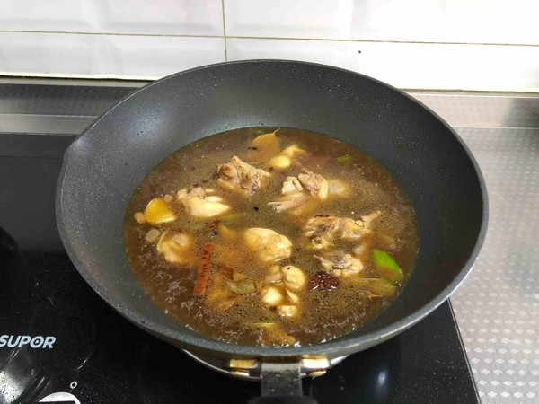 7.加入清水,沒過雞腿,開鍋轉(zhuǎn)中小火燉20分鐘