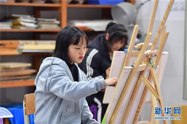 在融水苗族自治縣桿洞中學(xué),學(xué)生在繪畫室里上課(3月13日攝)。 新華社記者 黃孝邦 攝
