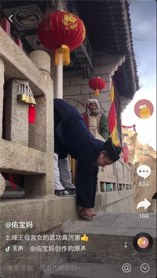 近日,一段華山北峰王母宮女道姑習武的視頻火了,視頻中中年道姑下腰,劈叉等動作如行云流水,一氣呵成。再次展現(xiàn)出華山武功的魅力。