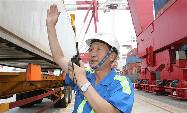央視網(wǎng)消息:“我站在碼頭就高興,甚至有點(diǎn)激動(dòng),四十多年了感情在這兒。”今年69歲的許振超,1974年進(jìn)入青島港,先后干過(guò)裝卸工、電工和橋吊司機(jī)等崗位,現(xiàn)在是青島前灣集裝箱碼頭有限公司固機(jī)高級(jí)經(jīng)理。他說(shuō),橋吊司機(jī)的工作是在四五十米的高空,僅憑左、右手控制操縱桿,指揮吊具升降、前進(jìn)和后退,在“巨無(wú)霸”的集裝箱里“穿針引線”。