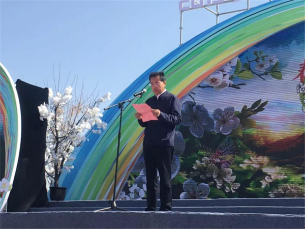 梨花節(jié)開幕式演出開始之前首先有三位嘉賓代表上臺(tái)發(fā)言致辭。