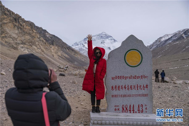 游客在珠穆朗瑪峰腳下拍照留念(4月6日攝)。 新華社發(fā)(孫非 攝)