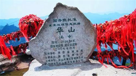 華山最高的山峰,有海拔2154.9米,站在南峰頂,一覽眾山小,遠處就是連綿不斷的秦嶺山脈。