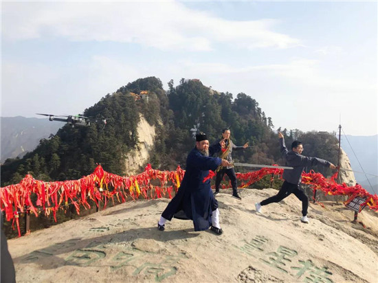 《百家講壇》魏新學者、《奇葩說第五季》清華名嘴楊奇函及中國道教協(xié)會車道長在西峰頂拍攝《華山論劍》文化旅游紀念片