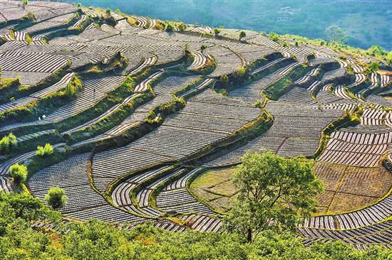 近日,南澗彝族自治縣南澗鎮(zhèn)白云村的烤煙大田移栽基本完成,一片片梯田構(gòu)成了一幅美麗的畫卷。南澗縣今年將進一步加大科技種植、科技管理力度,力爭實現(xiàn)烤煙生產(chǎn)提質(zhì)增效。本報通訊員 適志宏 攝