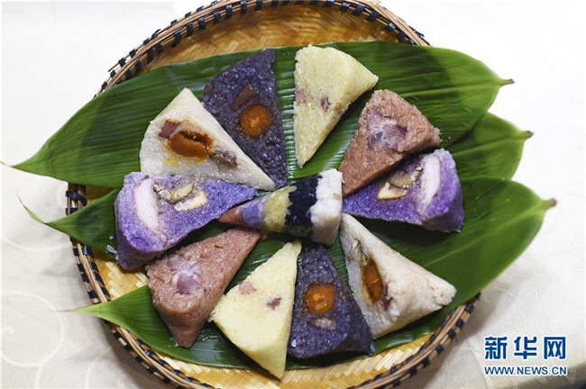 6月2日,在臺(tái)江縣一家食品生產(chǎn)企業(yè)車間,工人在包制五彩粽?!⌒氯A社發(fā)(劉開(kāi)福 攝)