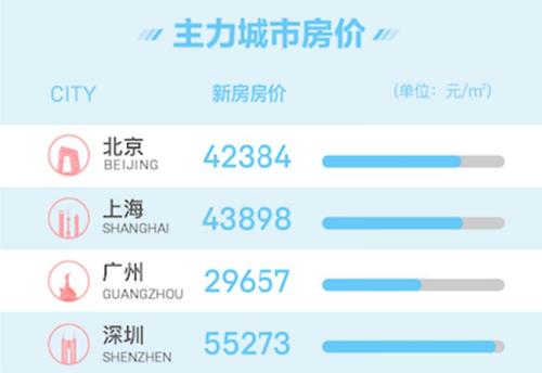新房方面,67個主要城市均價為16353元/平米,環(huán)比上漲0.44%。其中,北京、上海、深圳三個城市房價均價超過4萬元/平米,深圳新房均價最高,達到55273元/平米。