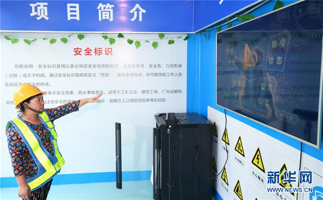 6月5日,重慶化龍橋超高層項目工人在VR安全體驗館內通過特種標識識別系統(tǒng)學習安全標識。新華社記者 王全超 攝