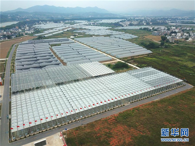 這是江西省于都縣梓山鎮(zhèn)富硒農(nóng)業(yè)產(chǎn)業(yè)園一景(2018年9月28日無人機(jī)拍攝)。新華社記者 胡晨歡 攝