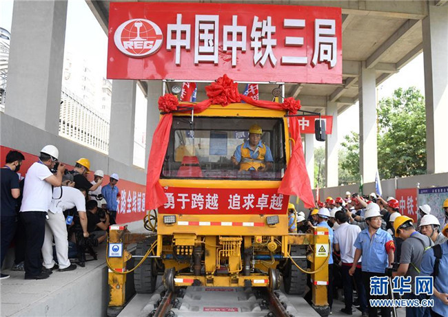 12日上午,京張高鐵最后一根鋼軌在中鐵三局WZ-500型無(wú)砟軌道鋪軌機(jī)牽引下準(zhǔn)確落在清華園隧道的枕木上,精調(diào)之后,軌距誤差在正負(fù)1毫米之內(nèi)。被譽(yù)為中國(guó)鐵路發(fā)展“集大成者”、智能高鐵示范工程的京張高鐵實(shí)現(xiàn)全線軌道貫通。