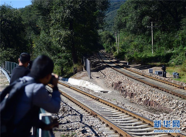 京張鐵路青龍橋站著名的“人”字形鐵路(2016年9月28日攝)。新華社記者 張晨霖 攝