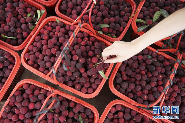 6月15日,在丹寨縣揚(yáng)武鎮(zhèn)老冬村楊梅種植園,果農(nóng)在轉(zhuǎn)運(yùn)采摘的楊梅。新華社發(fā)(黃曉海 攝)