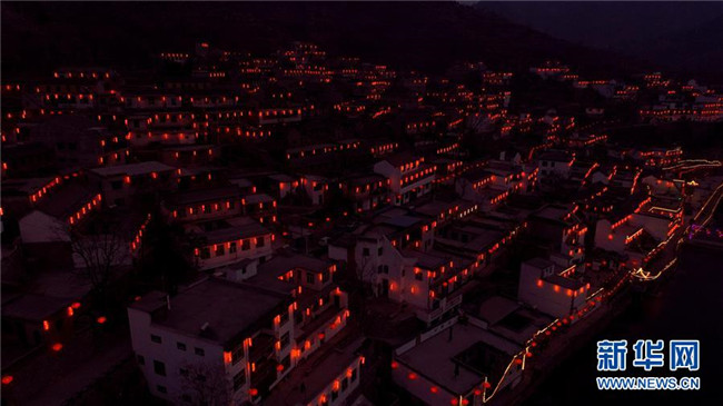 這是無人機拍攝的河北省涉縣井店鎮(zhèn)劉家村夜景(1月30日攝)。 新華社記者 王曉 攝