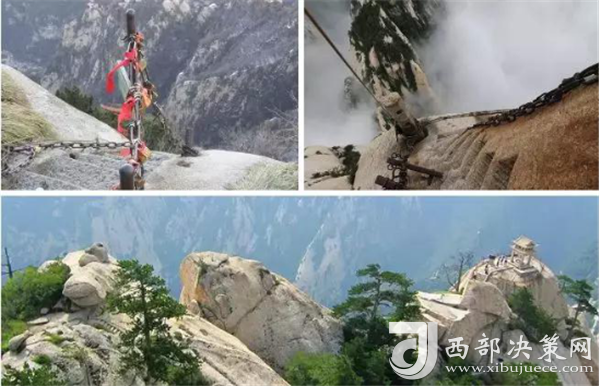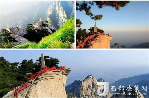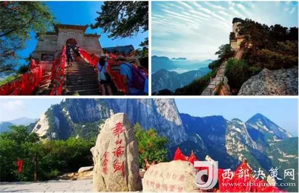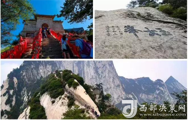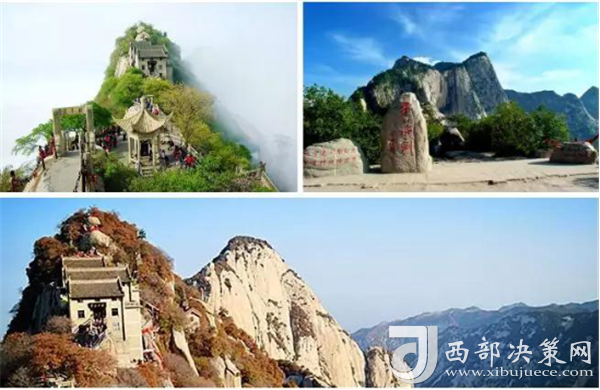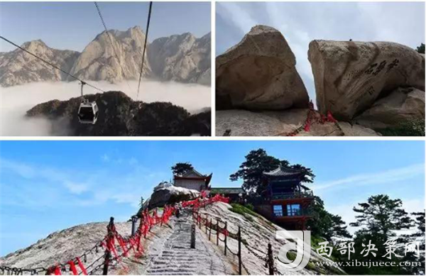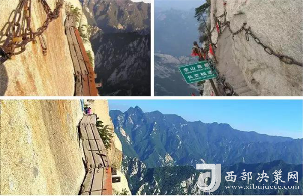 華山著名景區(qū)多達210余處,有凌空架設(shè)的長空棧道,三面臨空的鷂子翻身,以及在峭壁絕崖上鑿出的千尺幢、百尺峽、老君犁溝等,其中華岳仙掌被列為關(guān)中八景之首。